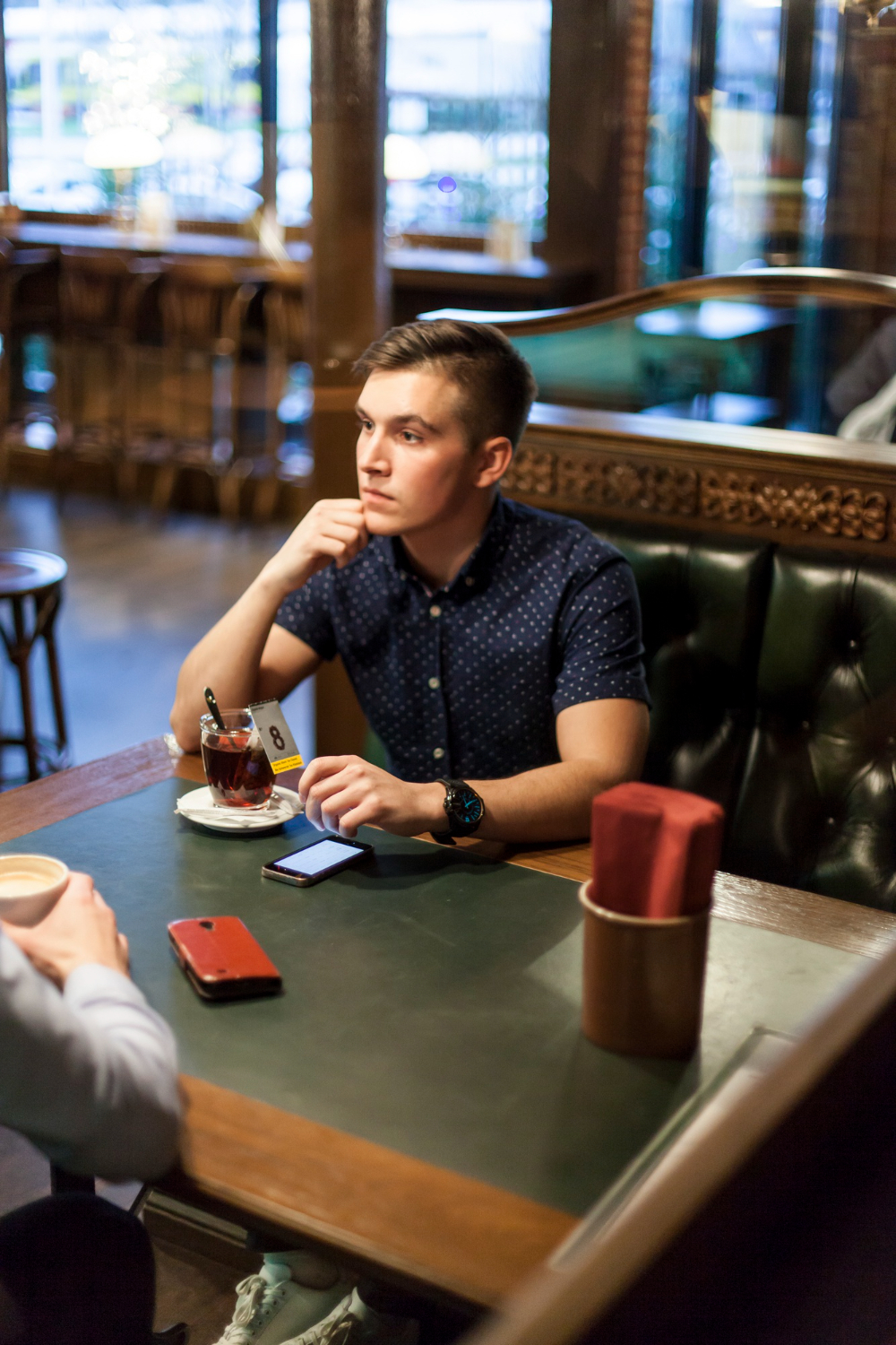 En el sujeto más cercano, sentado en el taburete. Realización técnica Sujetar la cámara con la mano apoyándose en el respaldo de un banco para evitar que se mueva.