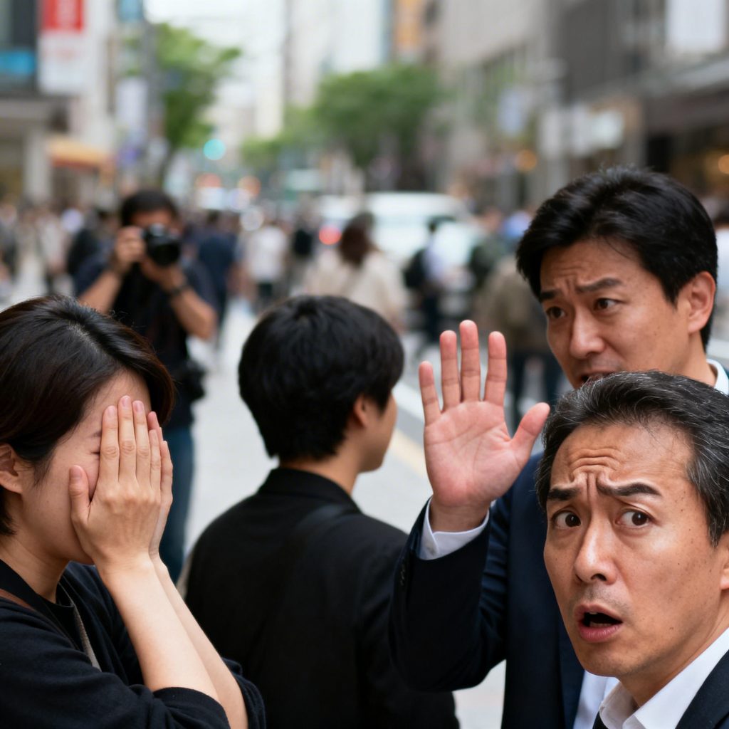 Los desconocidos no suelen reaccionar bien ante los fotógrafos, salvo algunos exhibicionistas. Los gestos más corrientes son el de taparse la cara con la mano, darse la vuelta y negar con la mano. Es comprensible que uno se pregunte: ¿por qué me querrá sacar una foto de ese tipo? A veces, por suerte, la reacción no va más allá de un gesto de perplejidad, que en este caso el fotógrafo ha sabido captar con prontitud y habilidad.