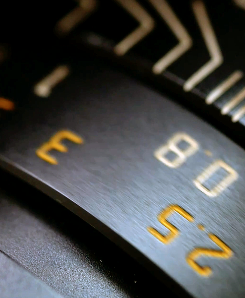 Vista microscópica de la emulsión de una placa fotográfica, donde se aprecian los cambios en el ennegrecimiento según distintos tiempos de exposición a la luz.